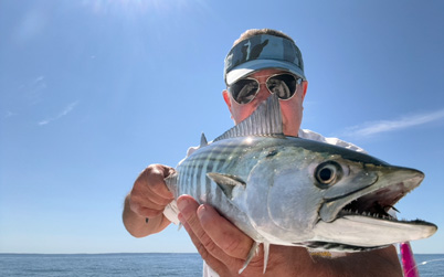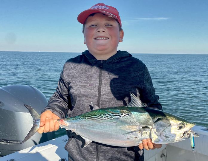 September 13, 2025 - Colton with a nice bonito taken on hit favorite white Game On Lures Exo Jig!