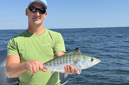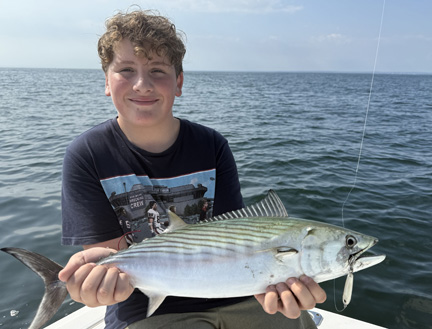 Colton with a sweet Bonito on September 13, 2025, they are here in big numbers. These are such a blast on the fly rod and light spinning tackle.